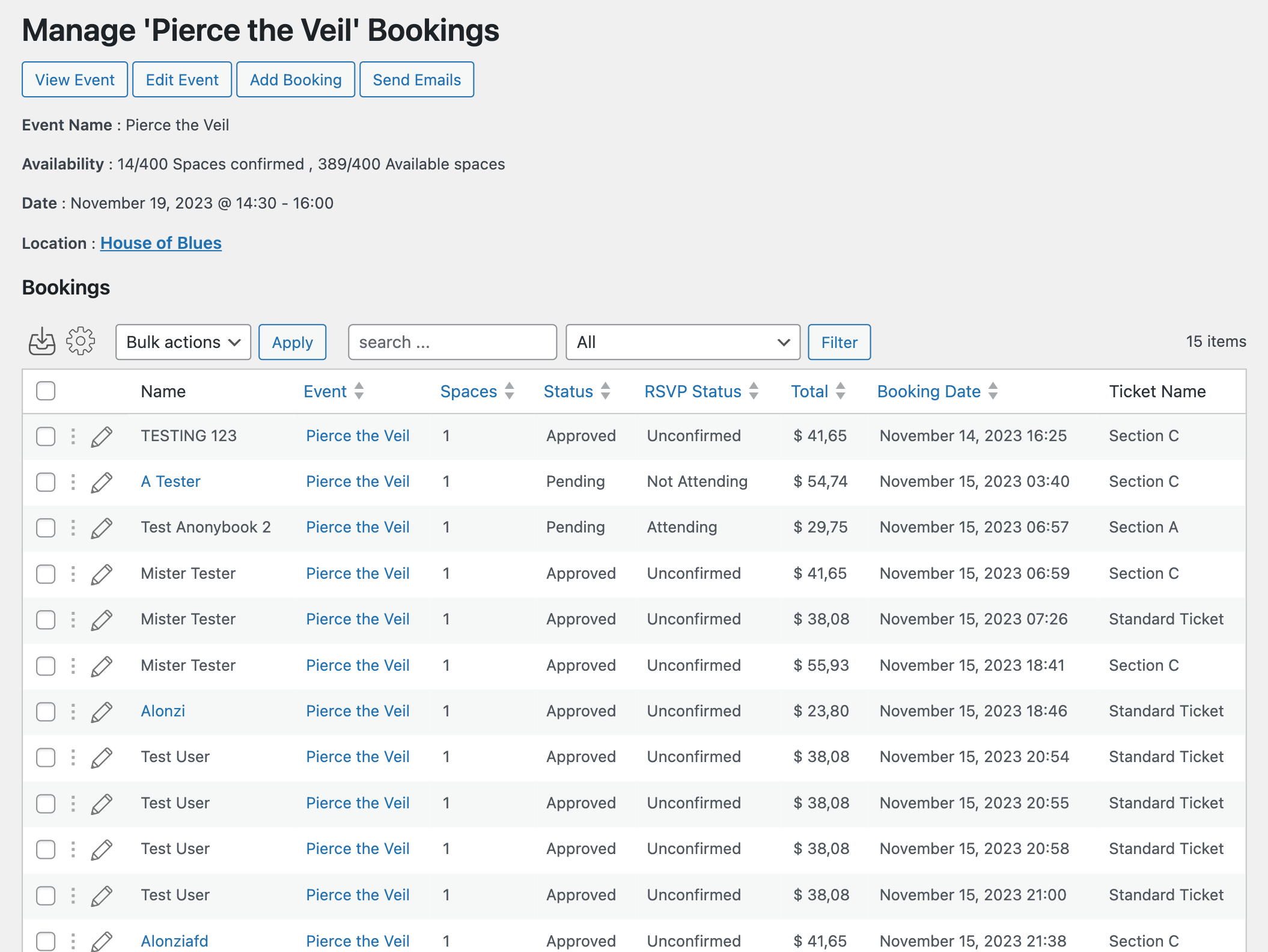 Automated booking management, with lots of features and tons of flexibility. View and manage all your event bookings from one place.